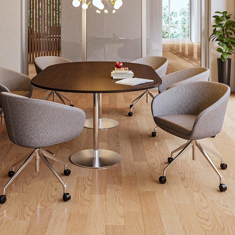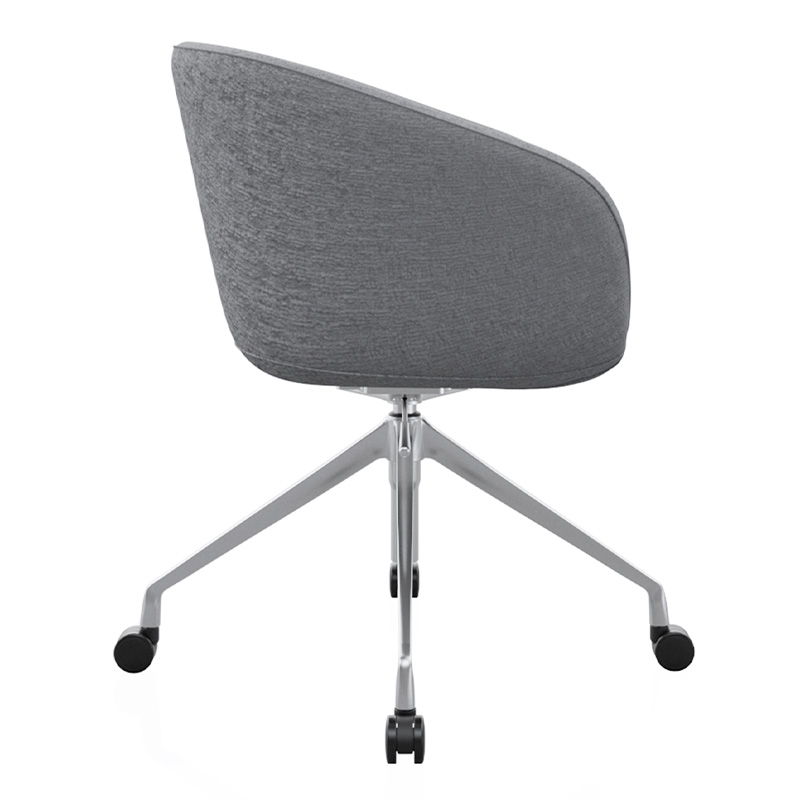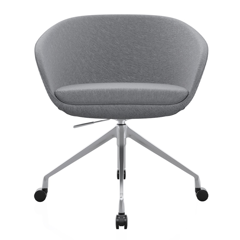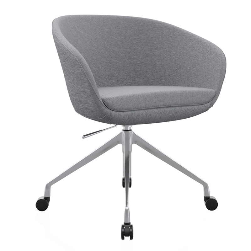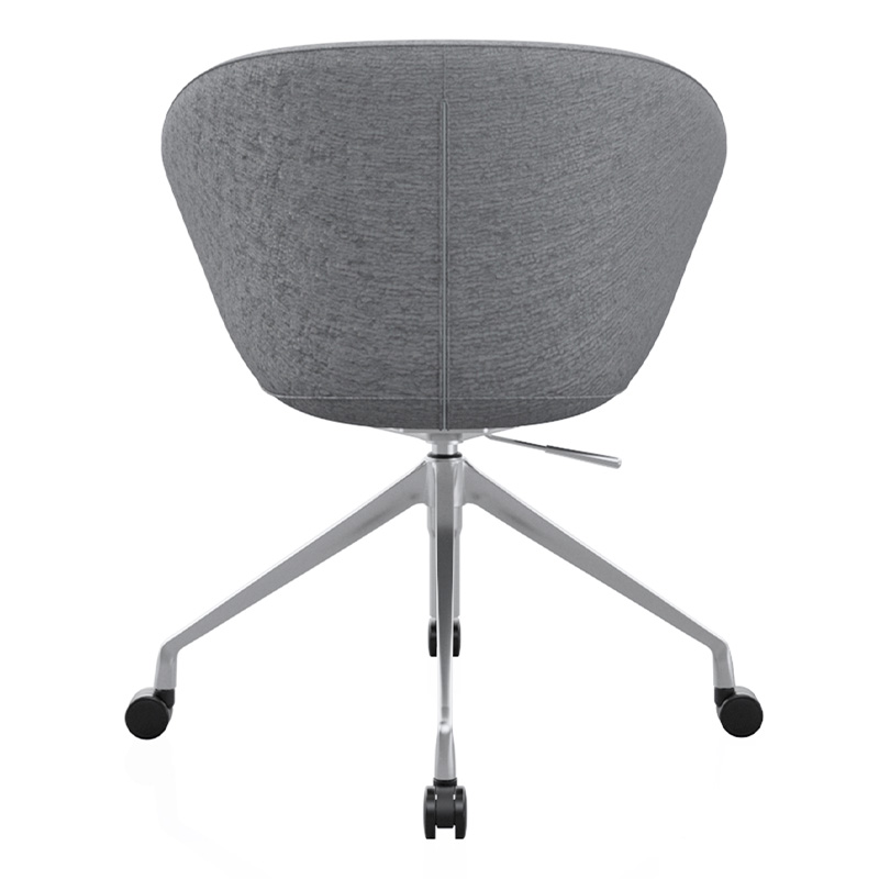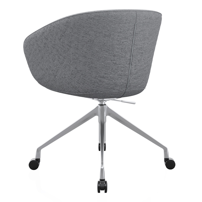 Incorpora mecanismo regulable en altura mediante palanca, base de aluminio pulido de cuatro aspas y ruedas Europa de 50 mm, que garantizan estabilidad, ligereza visual y desplazamiento fluido. Disponible en versión gris con estructura cromada, es una pieza versátil para espacios modernos.