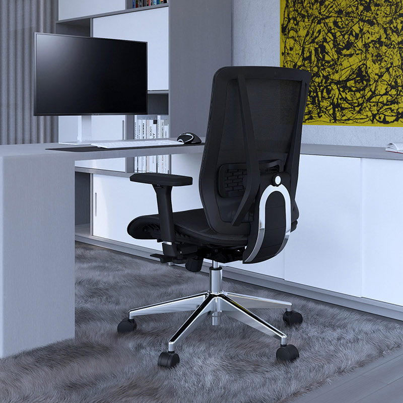 La silla Nefi Gerente es una opción ejecutiva de alto rendimiento, pensada para espacios donde la ergonomía, la funcionalidad y la presencia profesional son esenciales. Su diseño en color negro, junto con la base de aluminio, proyecta una imagen sólida y contemporánea sin perder ligereza visual.