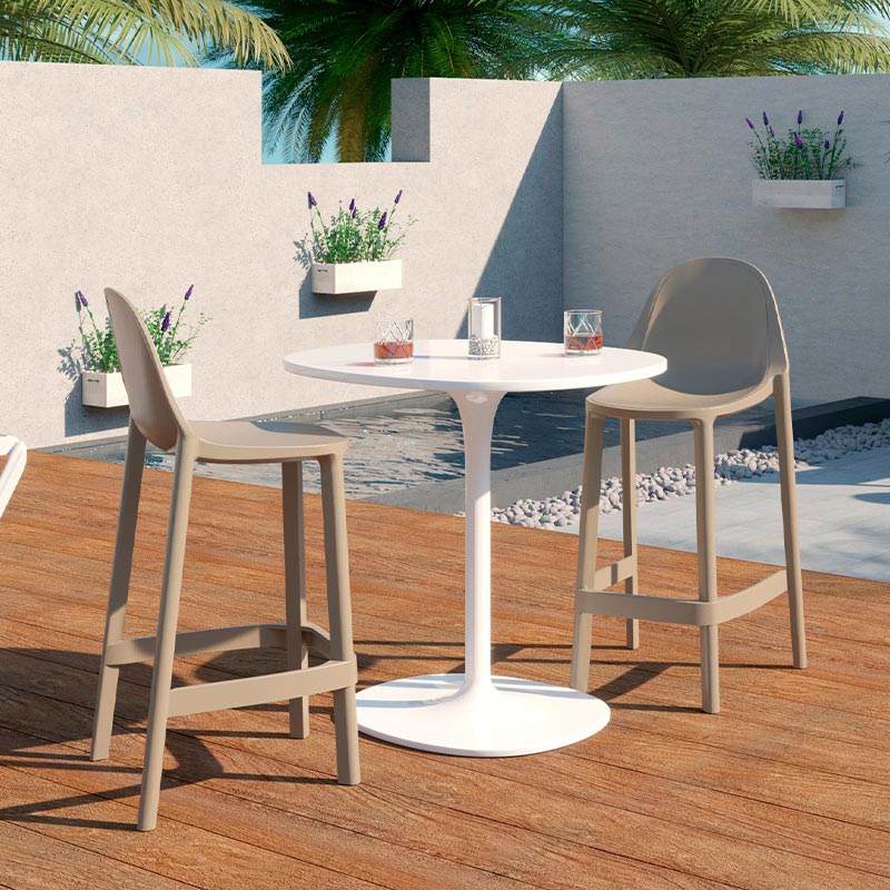 La silla de bar Piu es un producto italiano de un solo bloque, diseñada por Arter & Citton para ofrecer resistencia, confort y una estética moderna. Su estructura en polipropileno reciclable, reforzada con fibra de vidrio, tecnología de moldeo por aire y filtro UV, garantiza alta durabilidad y estabilidad.